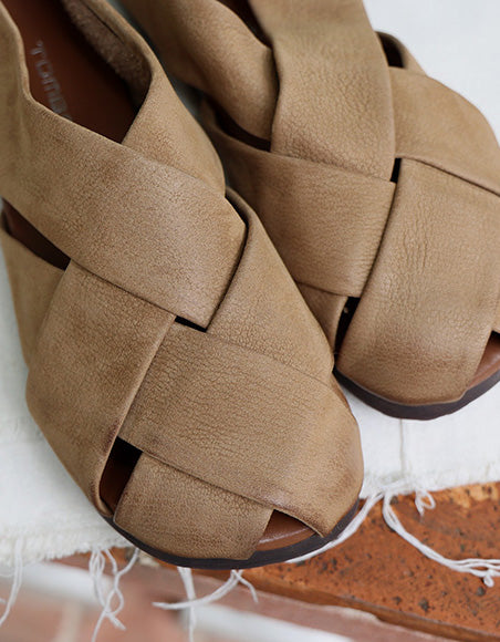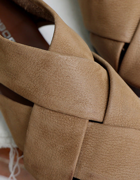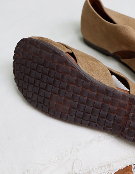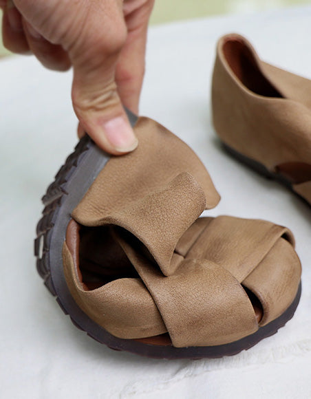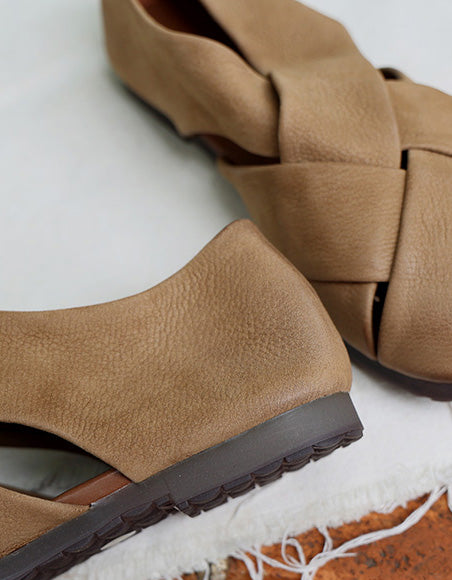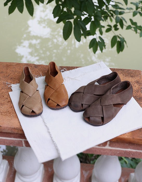 Sandales plates à lanières croisées en cuir rétro faites à la main