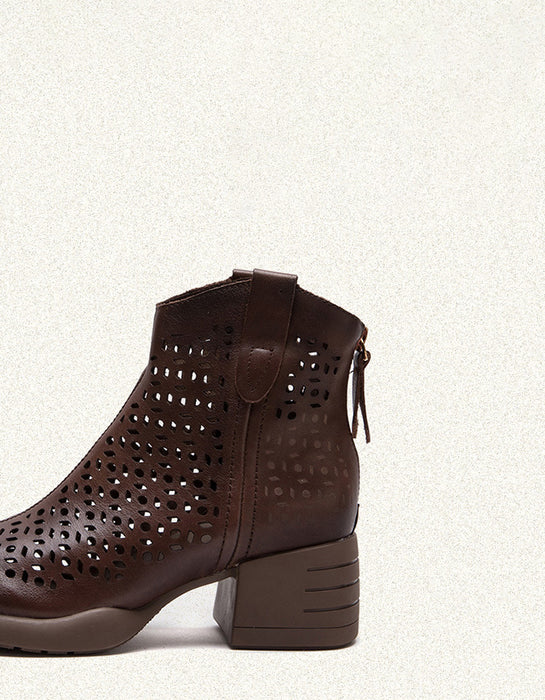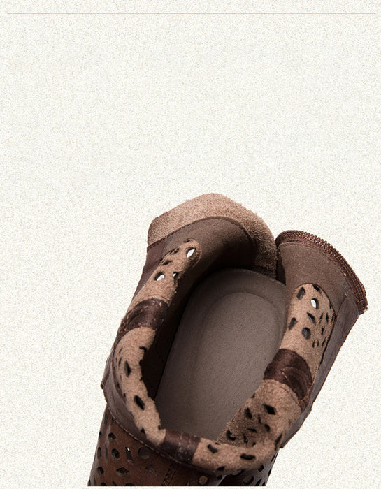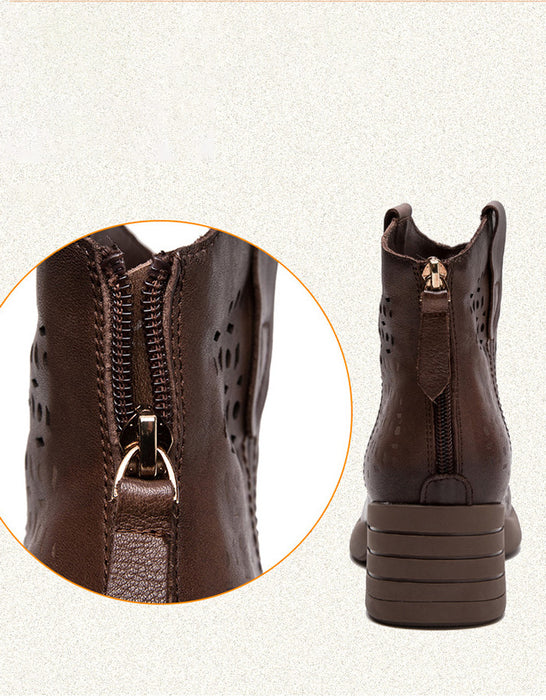 Bottes rétro à talons épais et creux en cuir pour femmes