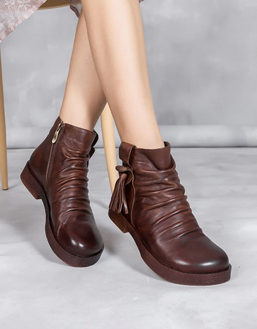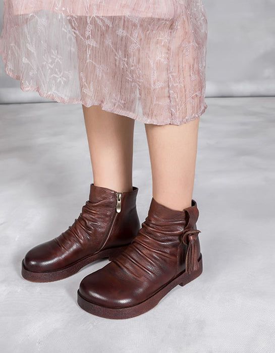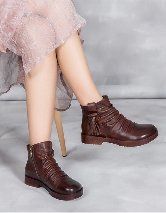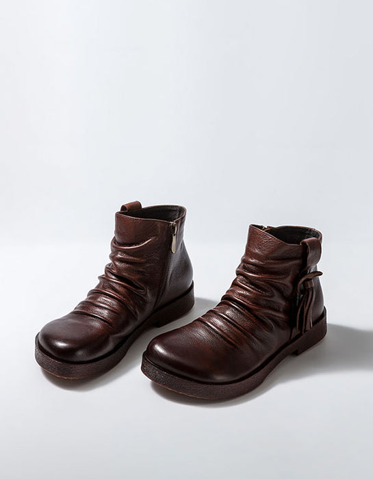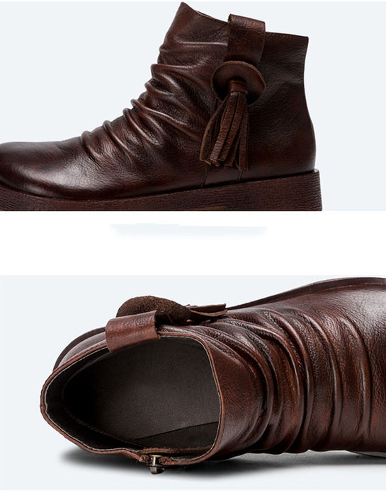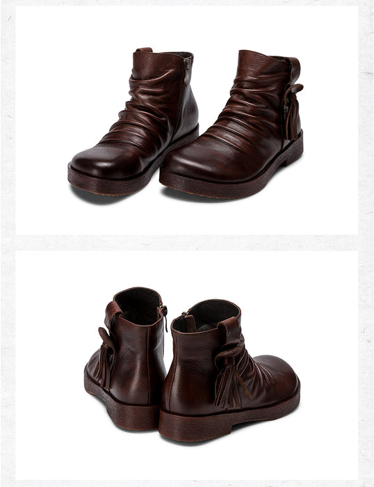 Bottes en cuir faites main rétro pour femmes à semelle souple