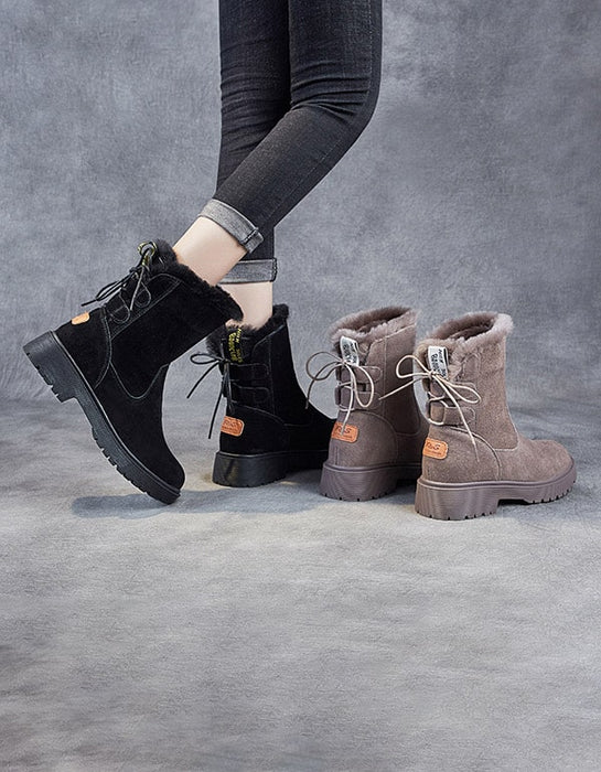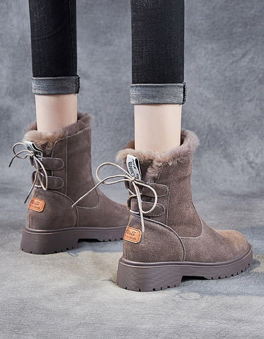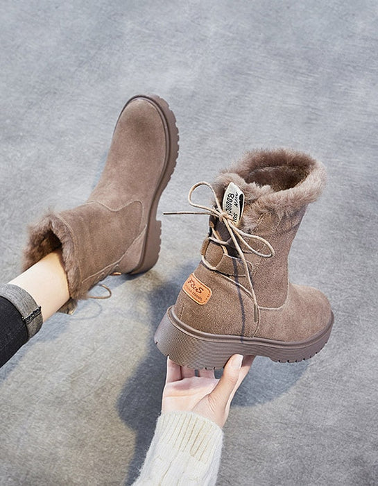 Bottes d'hiver à talons épais et mi-tubes en daim