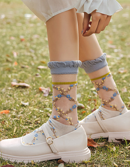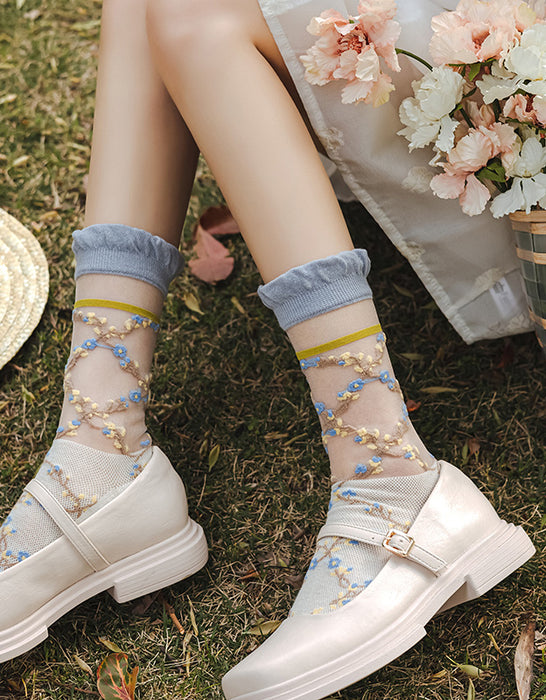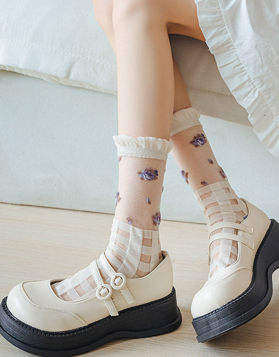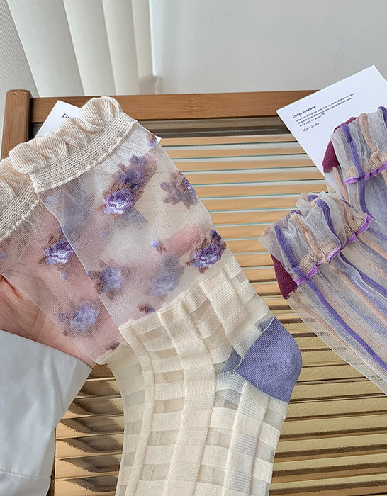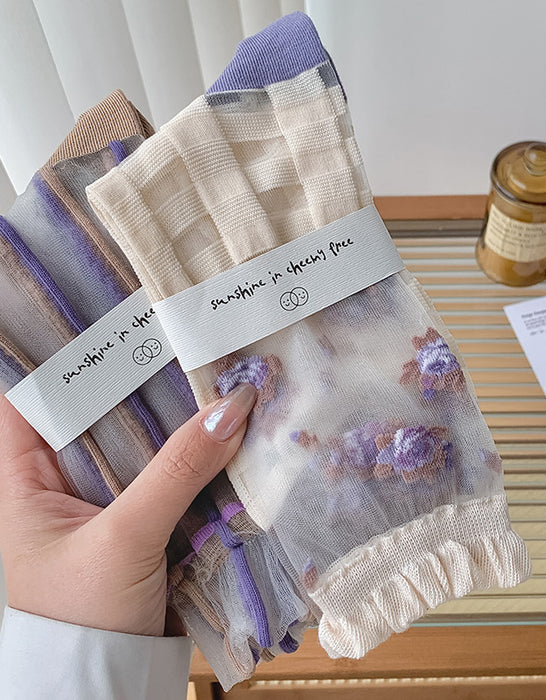 3 Pairs Transparent Embroidery Socks Purple