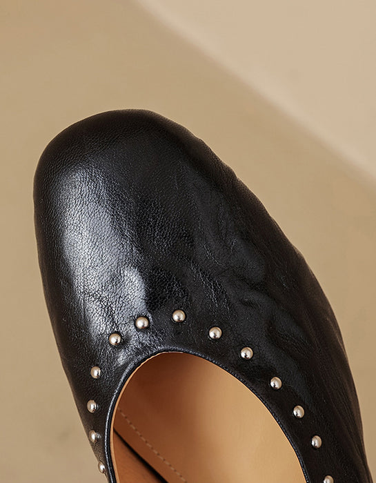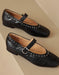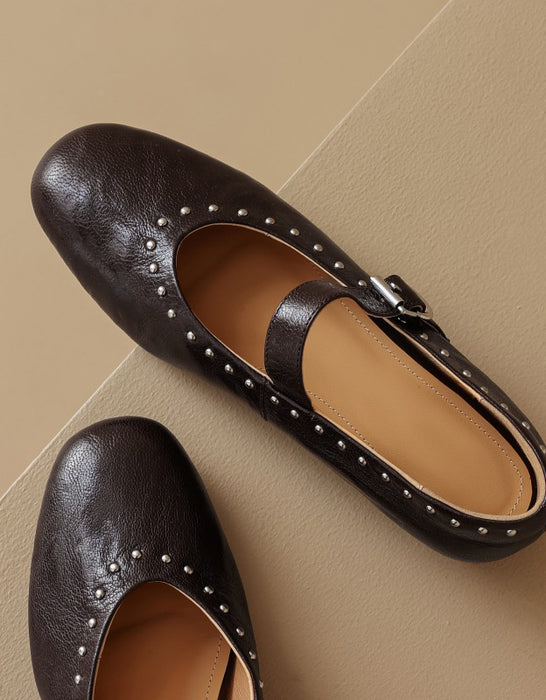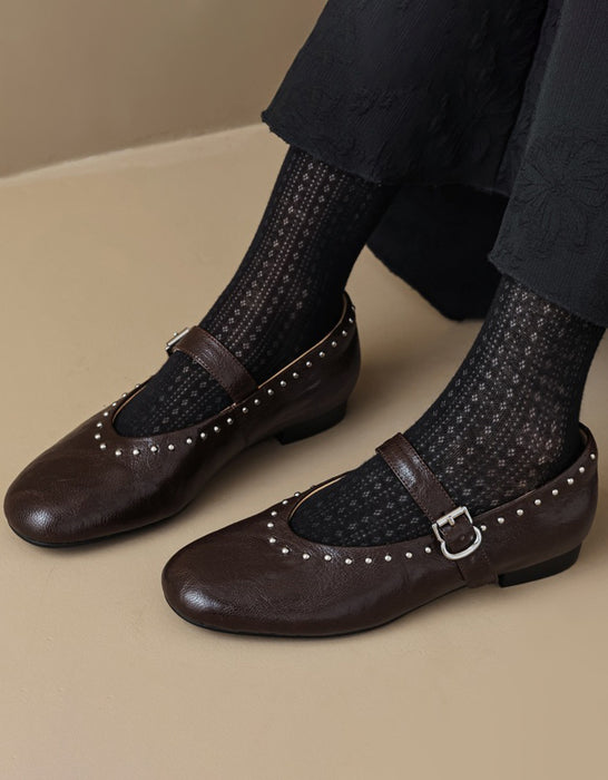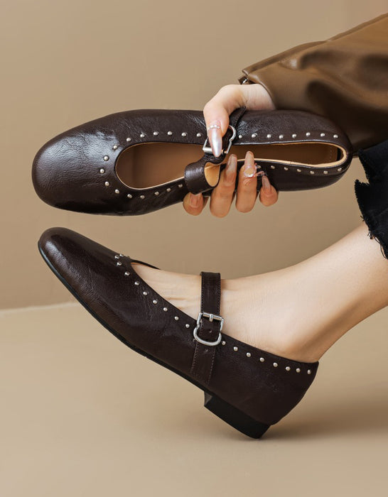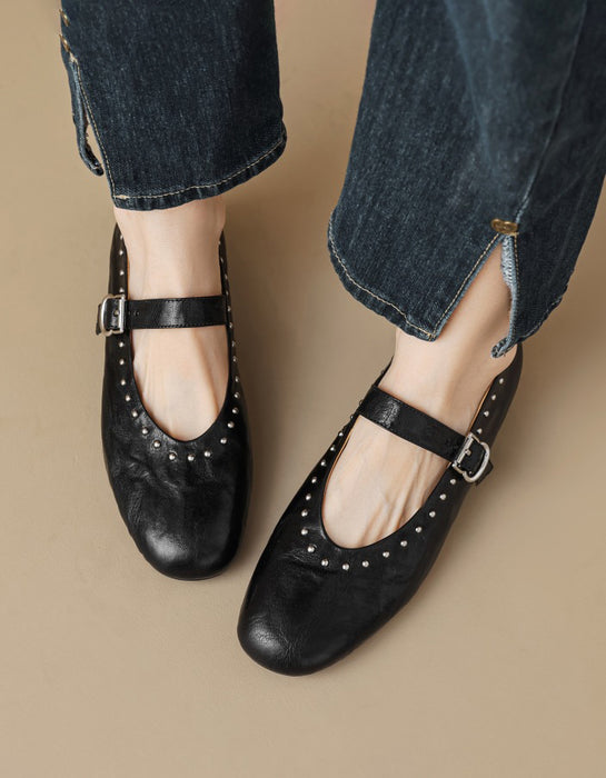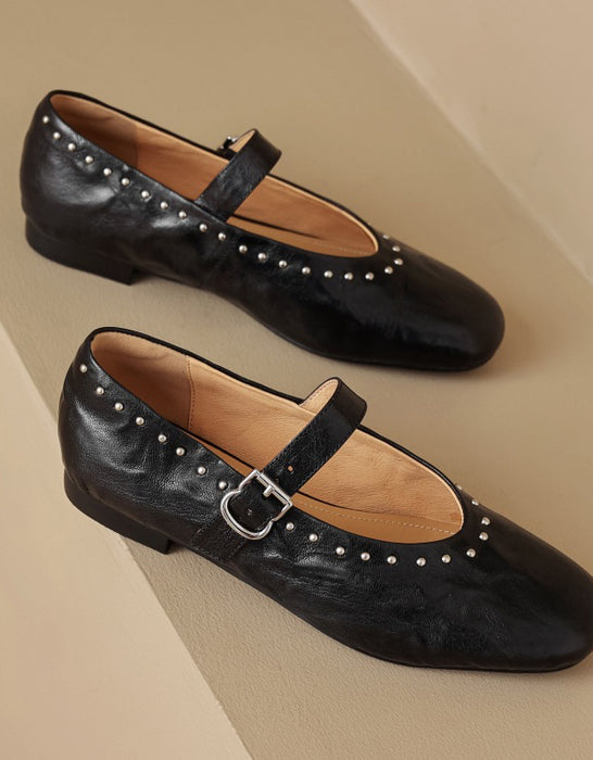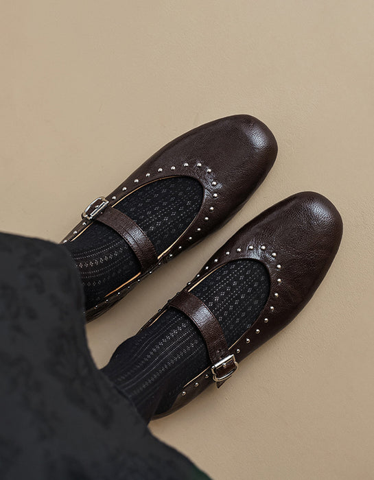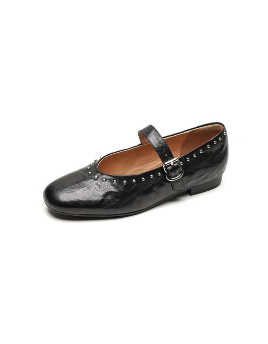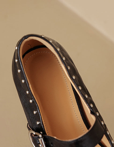 Handmade Sheepskin Front Rivet Single Buckle Mary Jane Shoes