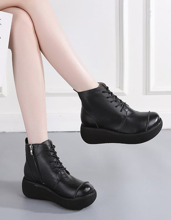 Autumn Winter Handmade Retro Leather Wedge Boots