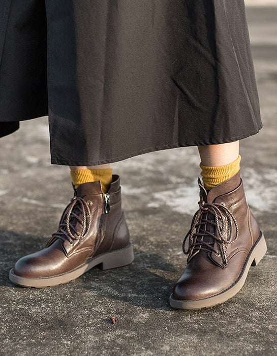 Autumn Winter Smooth Leather Martin Boots for Women