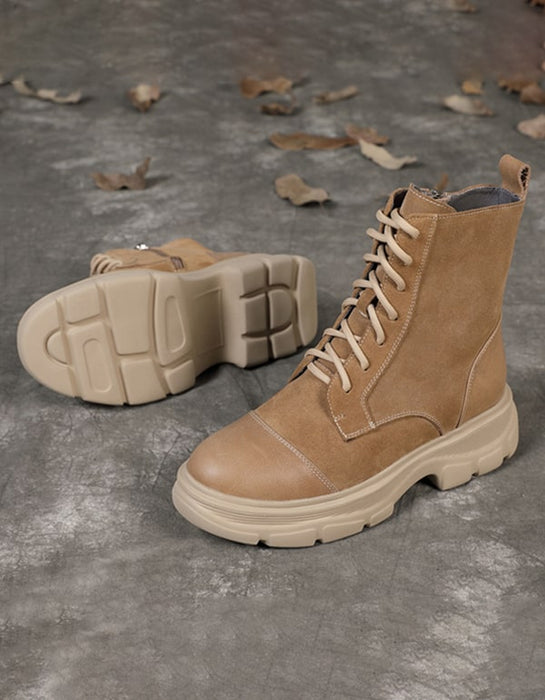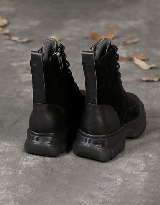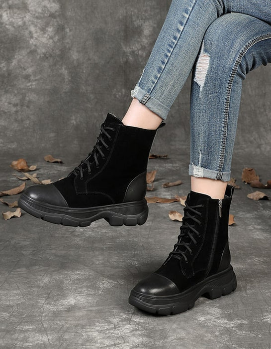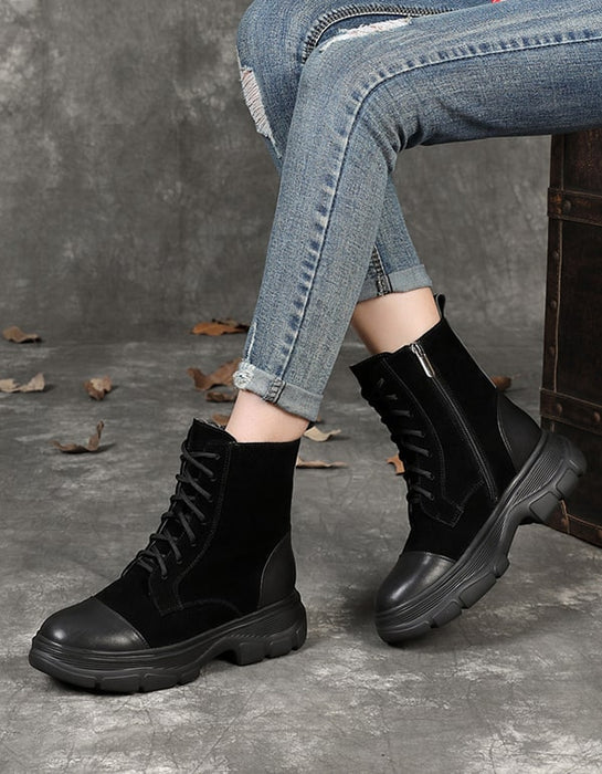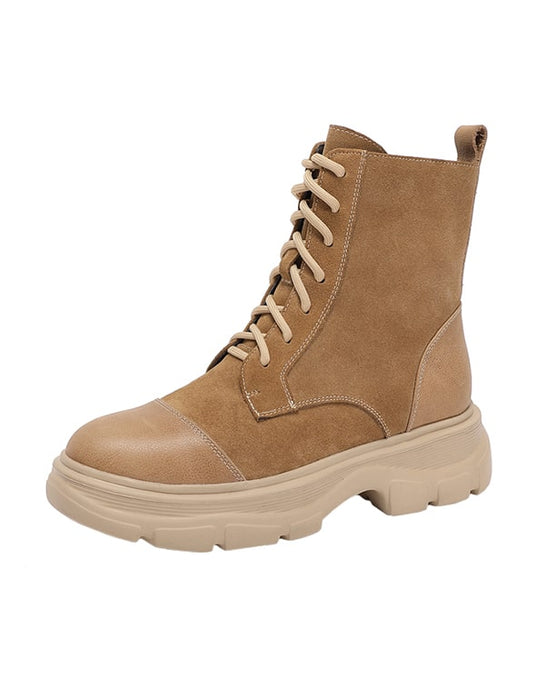 Autumn Winter Two Tone Lace-up Wide Toe Box Boots