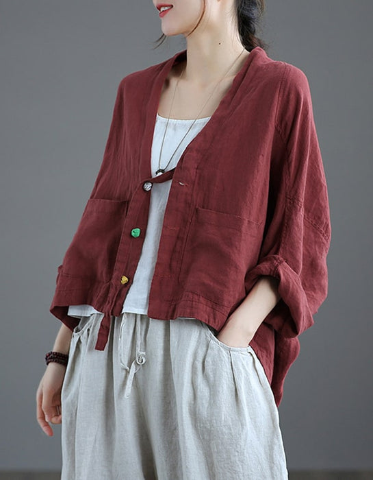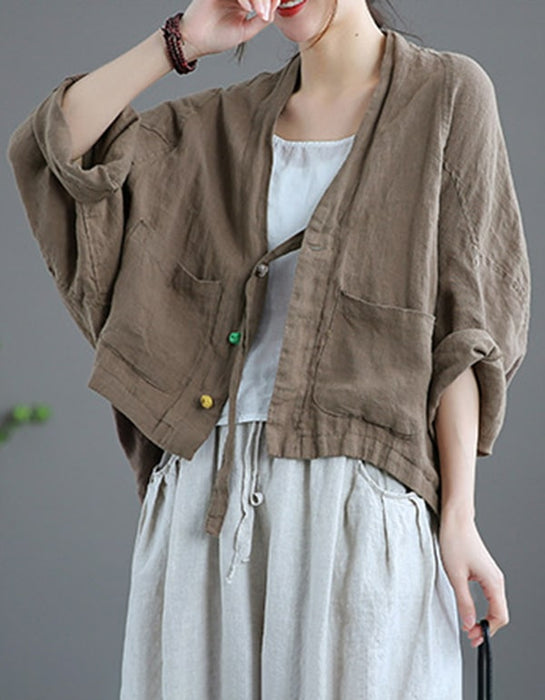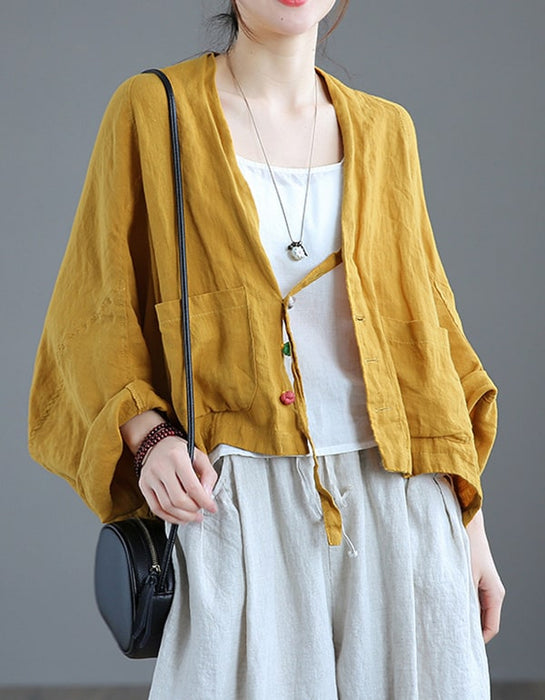 Autumn Women's Linen Long-sleeve Short Cardigan