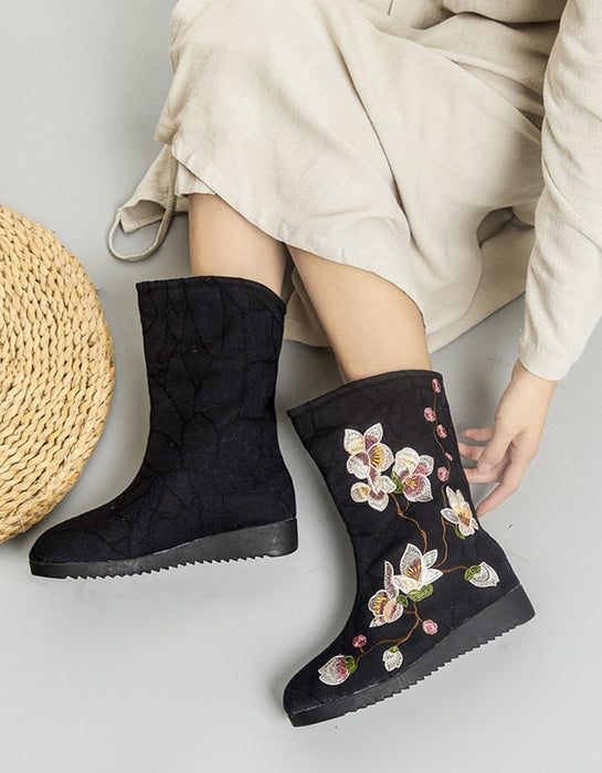 Chinese Ethnic Style Embroidered Winter Cotton Boots