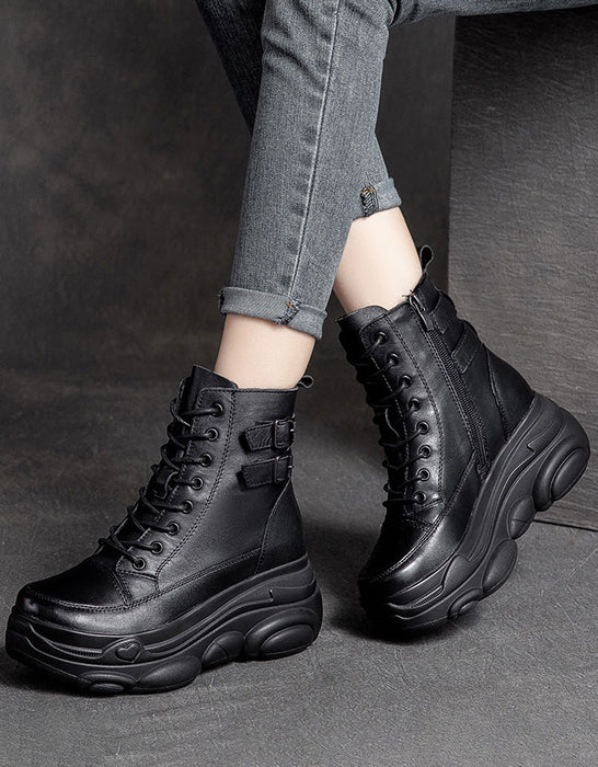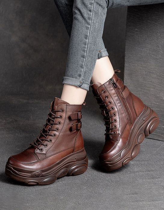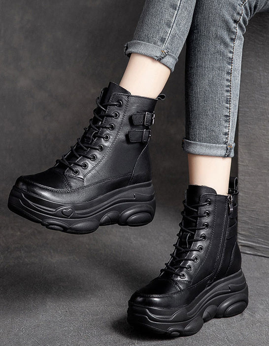 Winter Autumn Lace up Wide Toe Box Chunky Platform Boots
