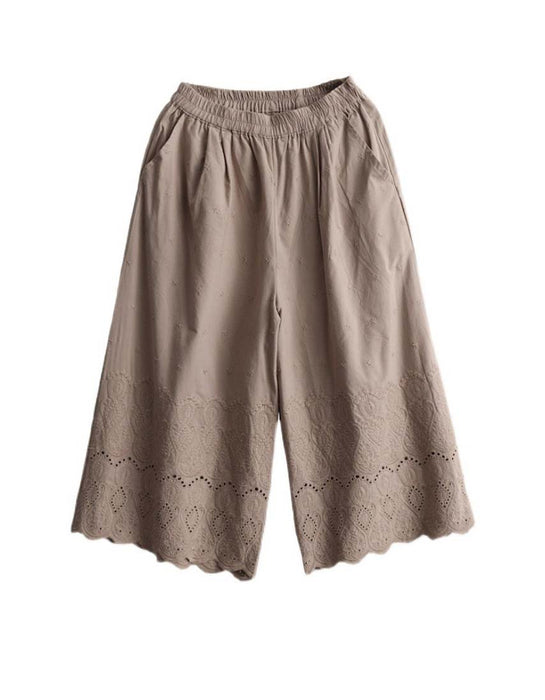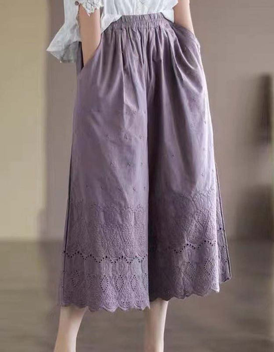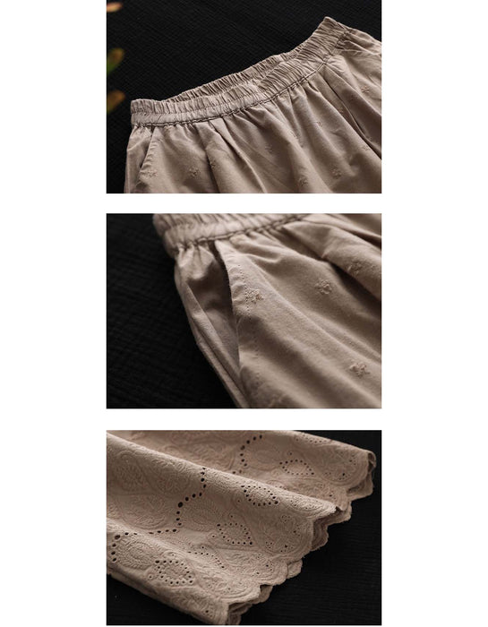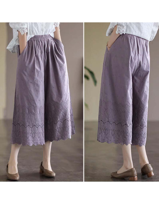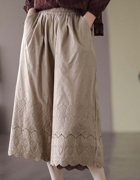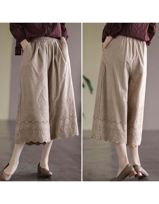 Flower Embroidered Hollow Casual Wide-leg Pants