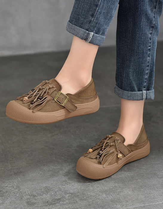 Genuine Leather Tassels Round Toe Casual Sneakers