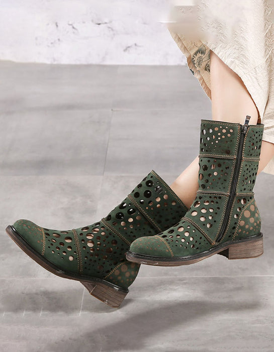 - Spring Summer Hollow hole women's handmade cool boots thick heel retro chivalrous boots vintage handmade sandals boots