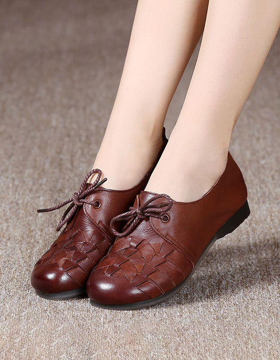 Hand-woven Non-slip Soft Leather Retro Flat Shoes