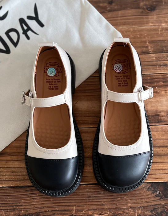 Real Leather Double Buckles Handmade Mary Jane Shoes