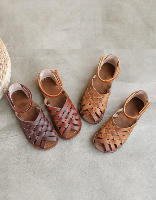 Handmade Vintage Leather Woven Retro Flat Sandals