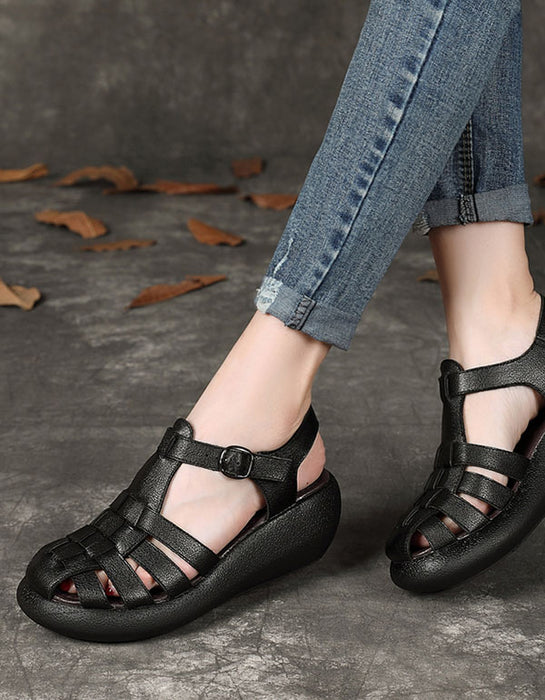 Handmade Comfortable Close Toe Wedge Fisherman Sandals