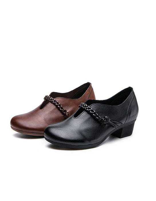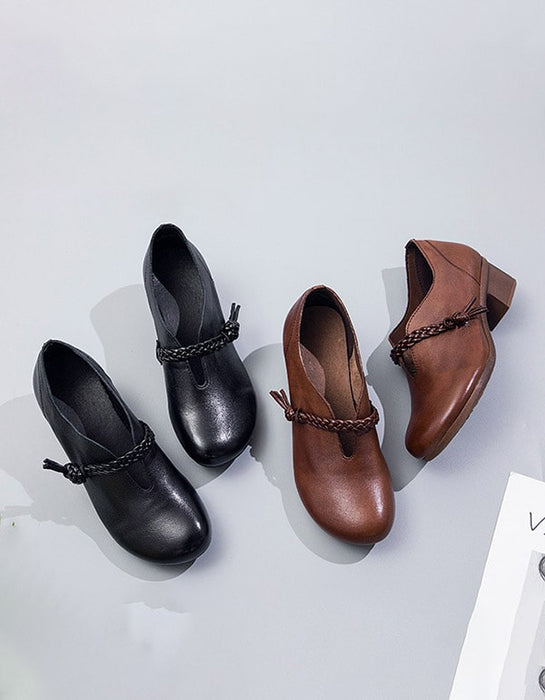 Retro Leather Comfort Thick Heel Chunky Shoes