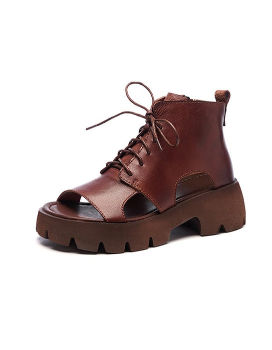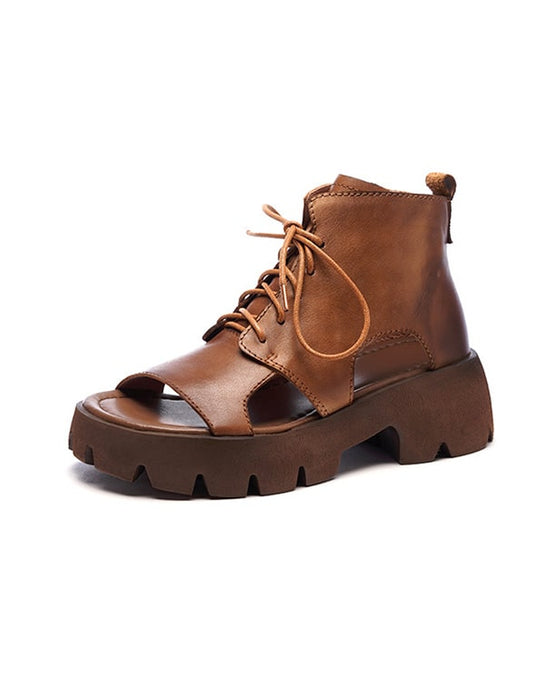 Leather Thick-soled Lace-up Sandals