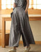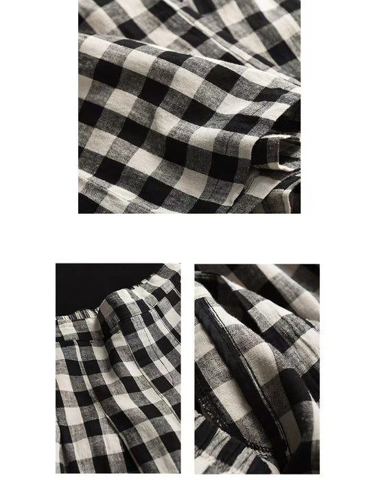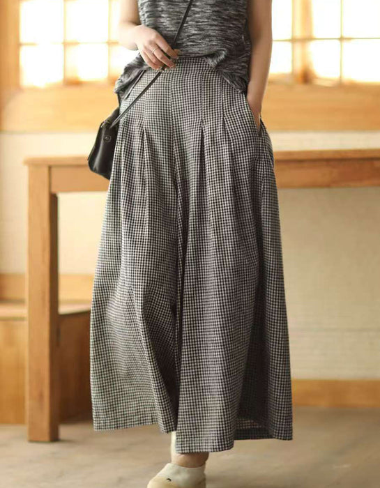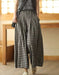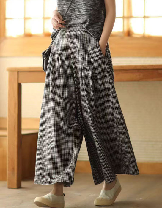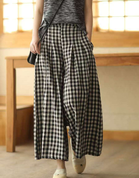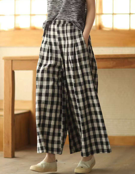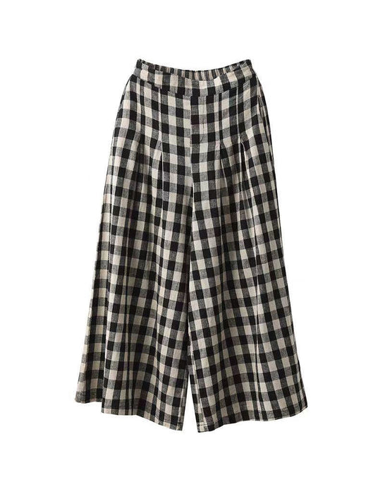 Linen Cotton Loose Casual Plaid Wide-leg Pants for Women