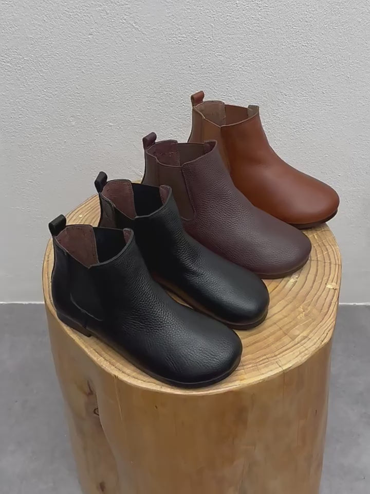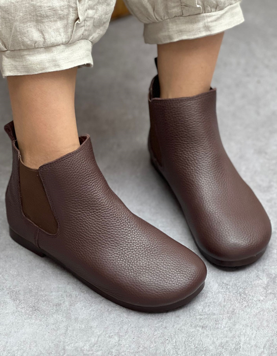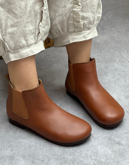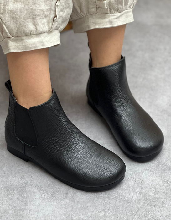 Side Elastic Round Toe Soft Leather Boots 35-41