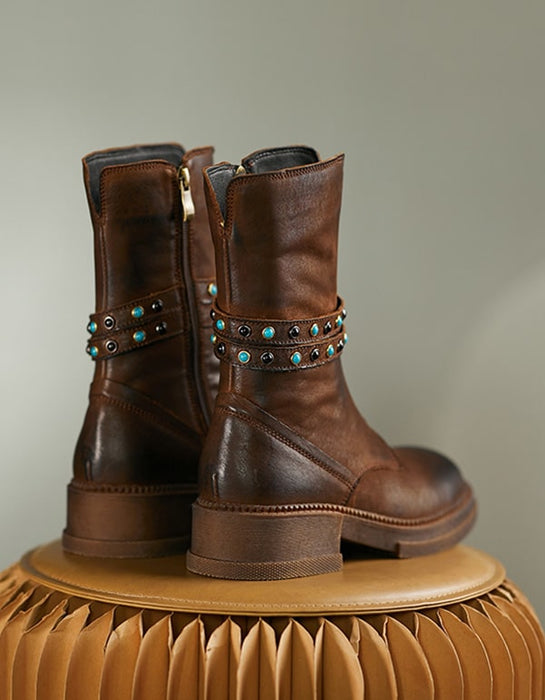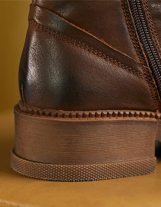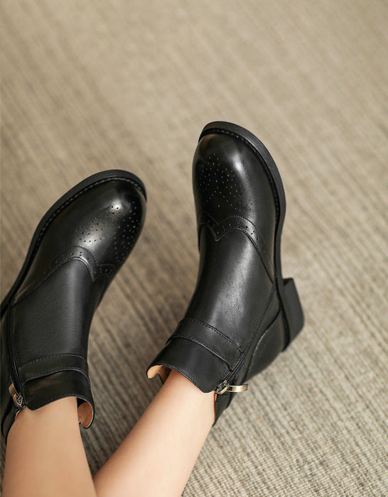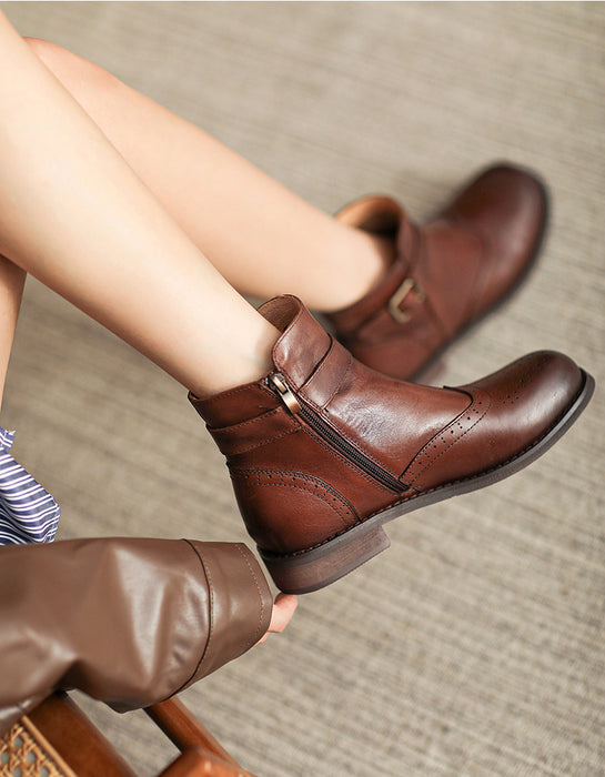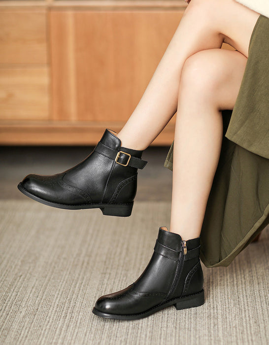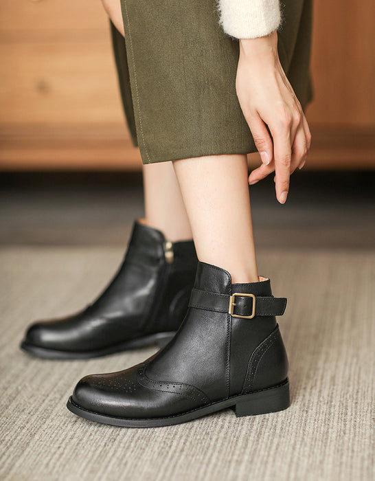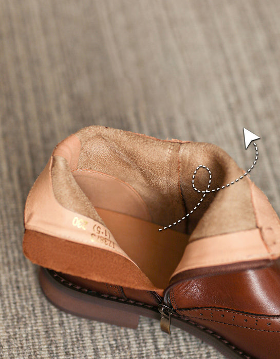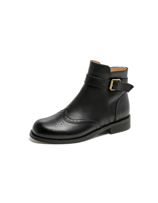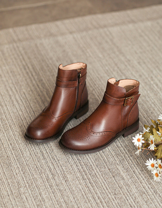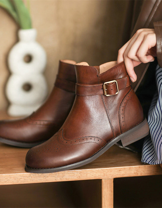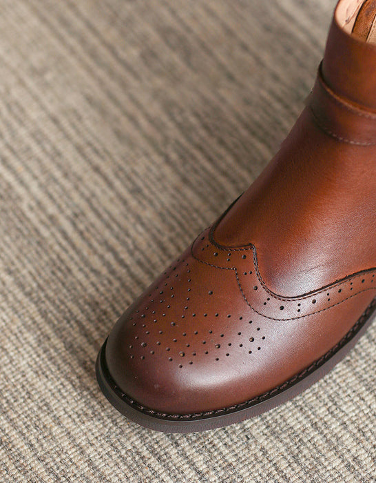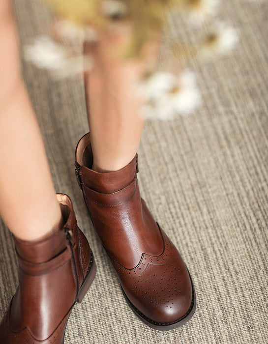 British Brogue Style Leather Ankle Boots