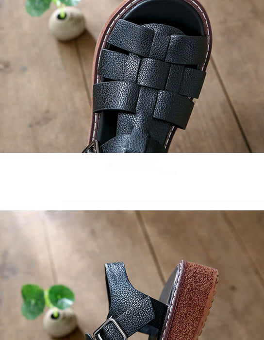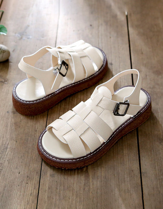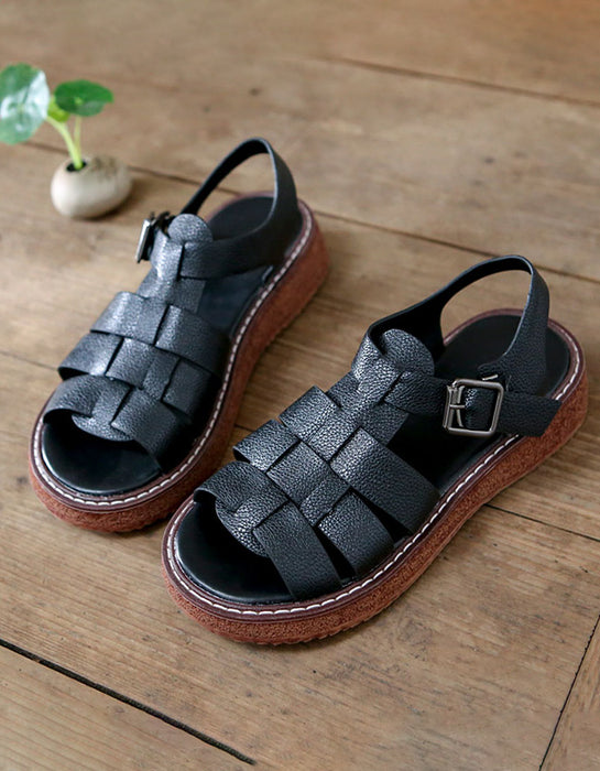 Open Toe Leather Woven Sandals Slingback