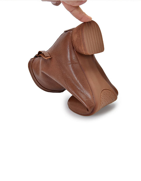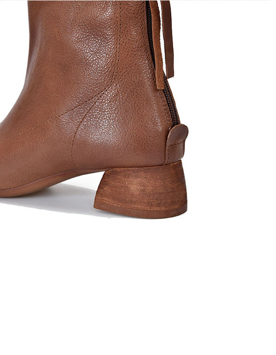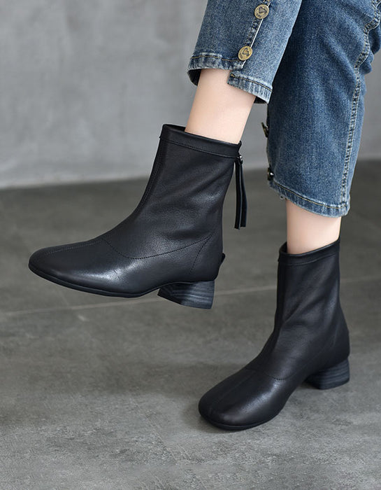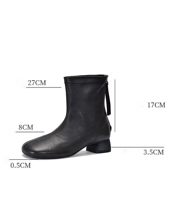 Real Leather Back Zipper Chunky Heel Chelsea Boots