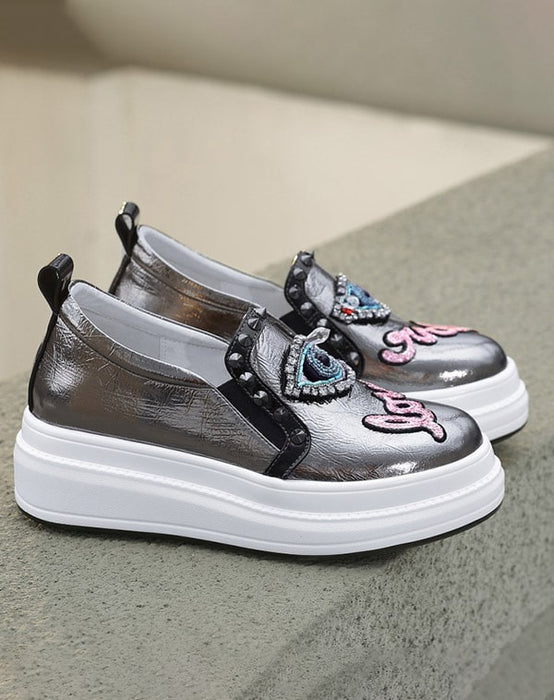 Genuine Leather Mesh Casual Comfortable Leather Sneakers