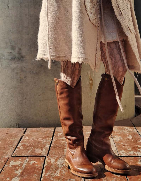Rich Leather Vintage Handmade Knee High Boots 34-41