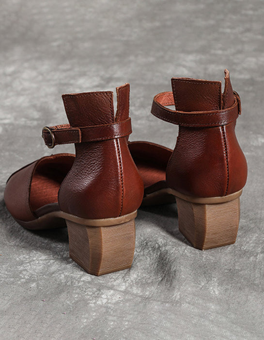 - summer leather elegant chunky heels sandals pumps work shoes.