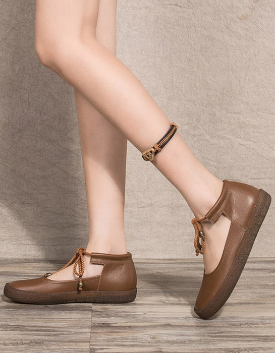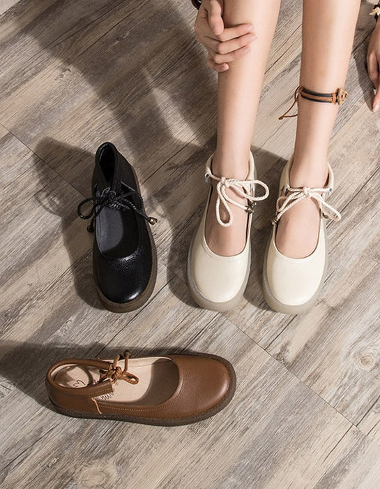 Spring Lace Up Comfortable Handmade Retro Flat Shoes