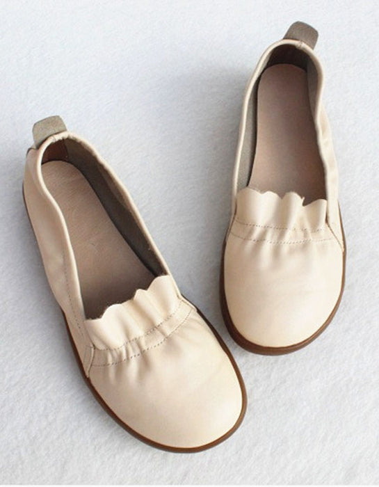 Spring Leather Flats Handmade Walking Shoes 35-41