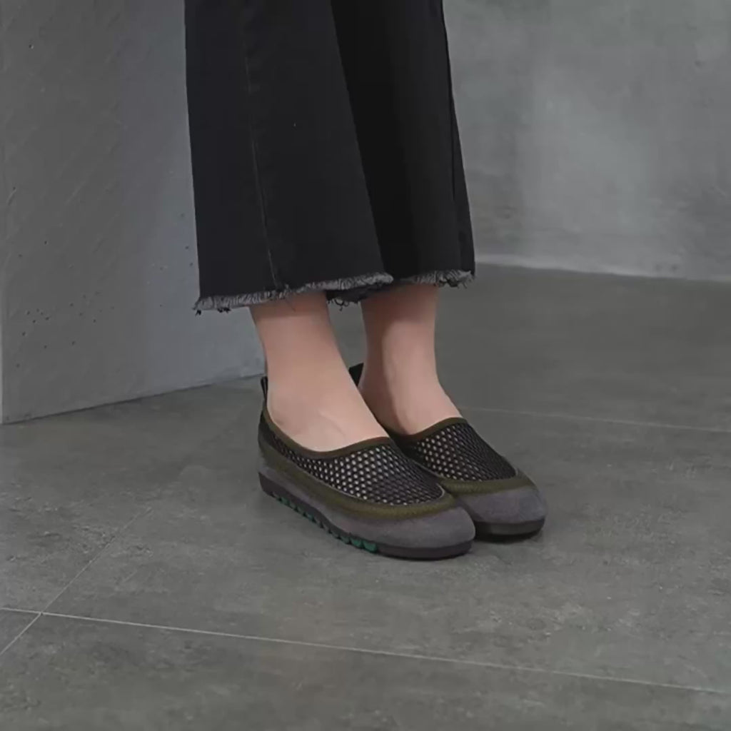 Experience ultimate comfort and breathability with these stylish mesh flat loafers. With a soft cushioned sole and a flexible and lightweight design, these barefoot flat shoes are perfect for everyday wear. Colorful earth tones and contrasting trims add a unique touch, while the breathable mesh upper keeps your feet cool all day long. 2 cm heel and 8 cm shoe width. The sole is top layer cowhide, and the sole is made of high-quality cowhide sole (soft, high anti-slip and high wear resistance), last long. These Obiono flat shoes are perfect for casual walks, errands or leisure, these flat loafers combine function, fashion and relaxed style, and are versatile.