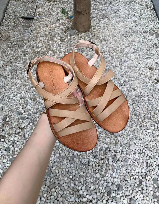Genuine Leather T-strap Vintage Roman Sandals Slingback