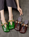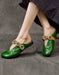 Square Toe Flower Strap Handmade Retro Leather Slippers Mules
