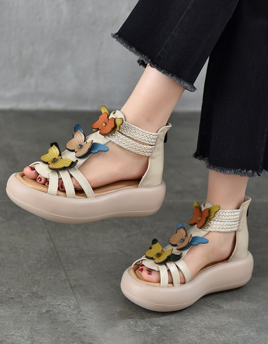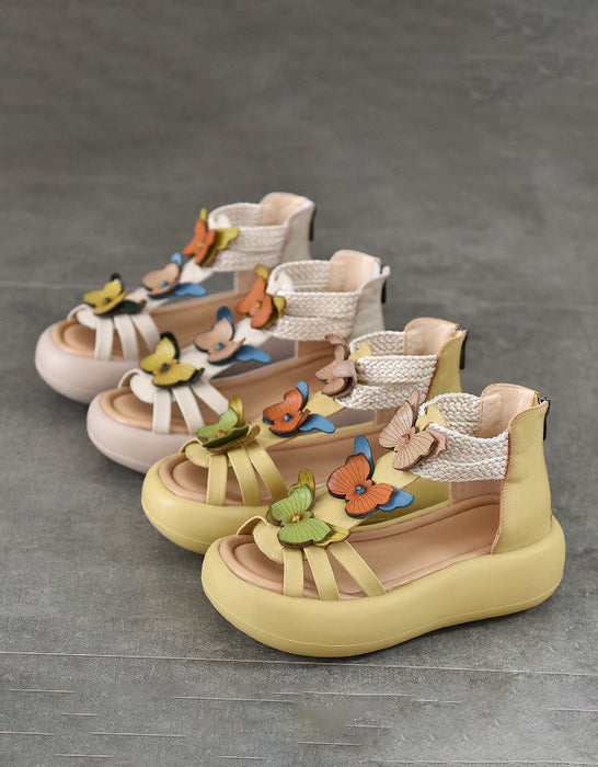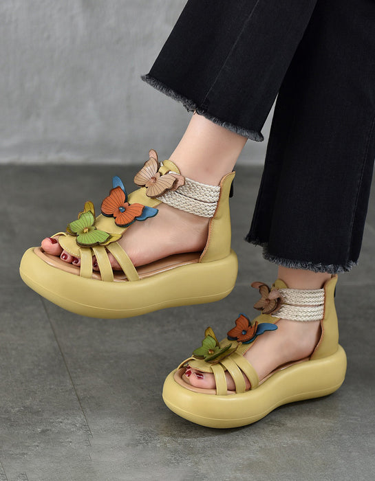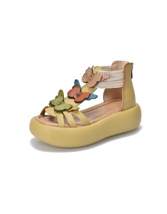 Add a playful touch to your summer wardrobe with these colorful butterfly platform sandals. Featuring a vibrant 3D butterfly graphic and a secure ankle strap with braided detailing, these sandals are as charming as they are comfortable. 5.5cm heel height. The thick platform provides all-day support, making them ideal for casual outings, vacations or festivals. Available in soft beige and sunny yellow, these eye-catching sandals are perfect for a fun, stylish look on any warm-weather day.