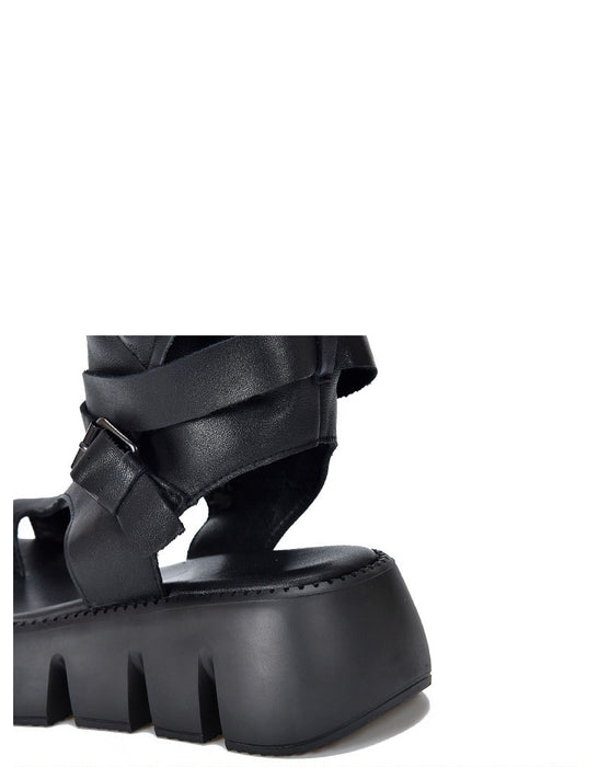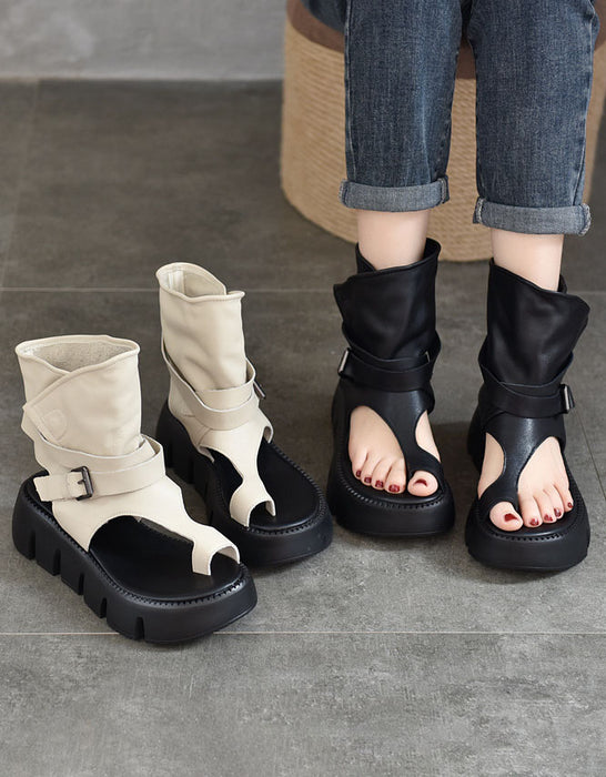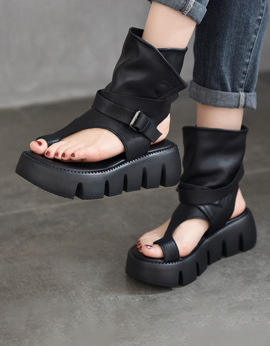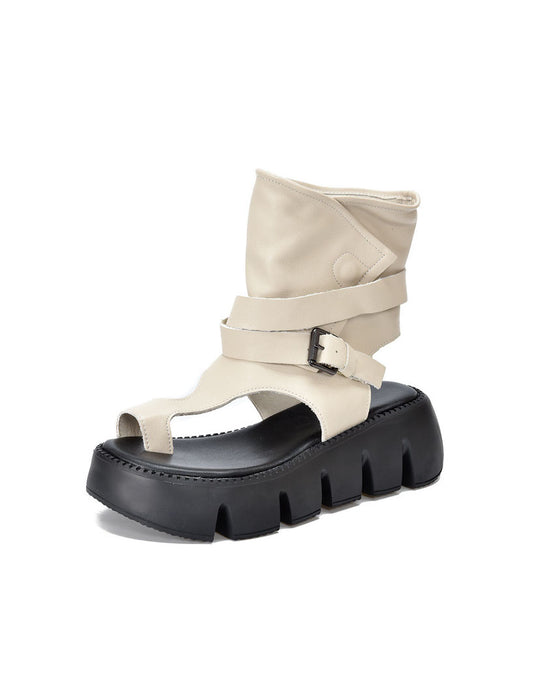 Make a bold statement with this obiono summer breathable toe ring platform sandal boot. The unique open toe design, with a secure toe ring, thick platform sole and soft breathable material, perfectly combines avant-garde style with all-day comfort. The adjustable buckle ensures a comfortable fit. The sole is 5.5 cm thick and the shoe width is 8.5 cm. These platform sandals also a wide toe box sandals and perfect for both casual travel and street fashion. It will add height and fashion to your summer wardrobe.