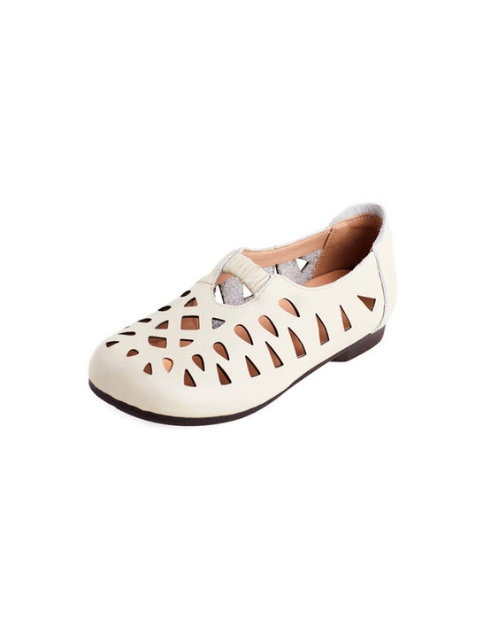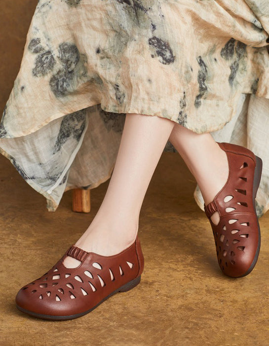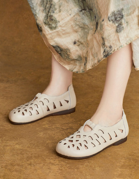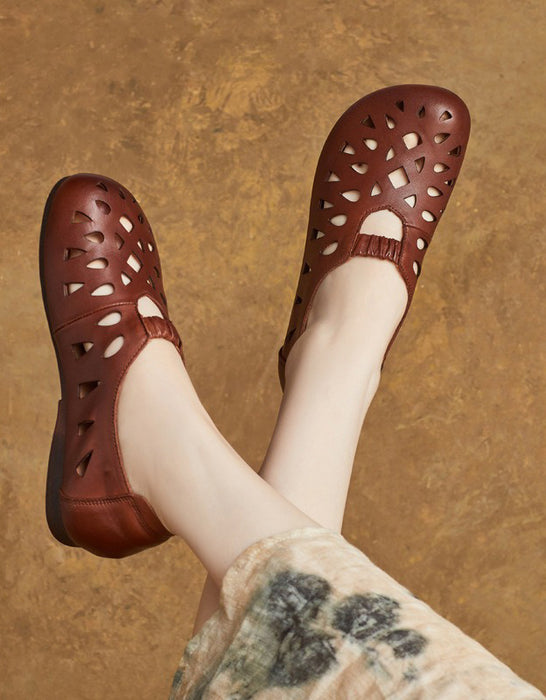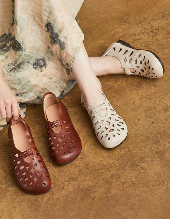Summer Soft Soles Leather Hollow Retro Flat Shoes