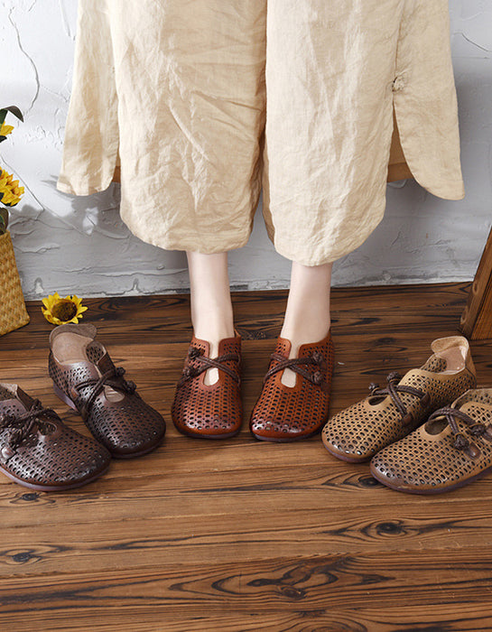 - Women soft bottom cowhide soft bottom comfortable plate buckle Flat shoes