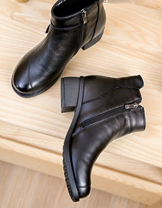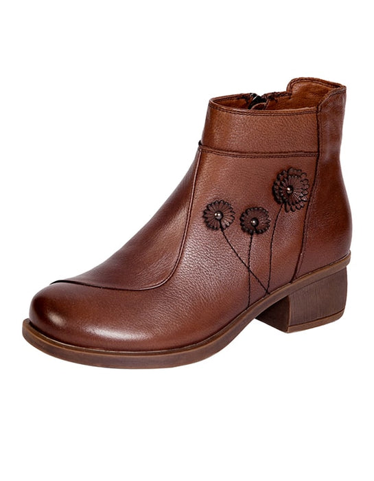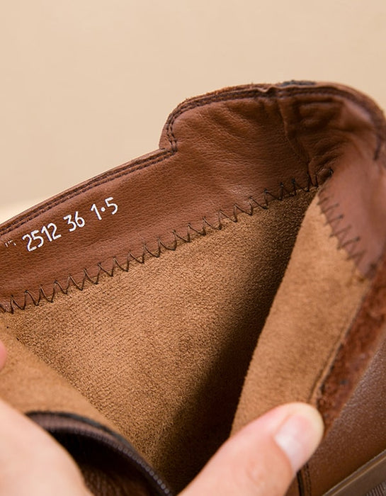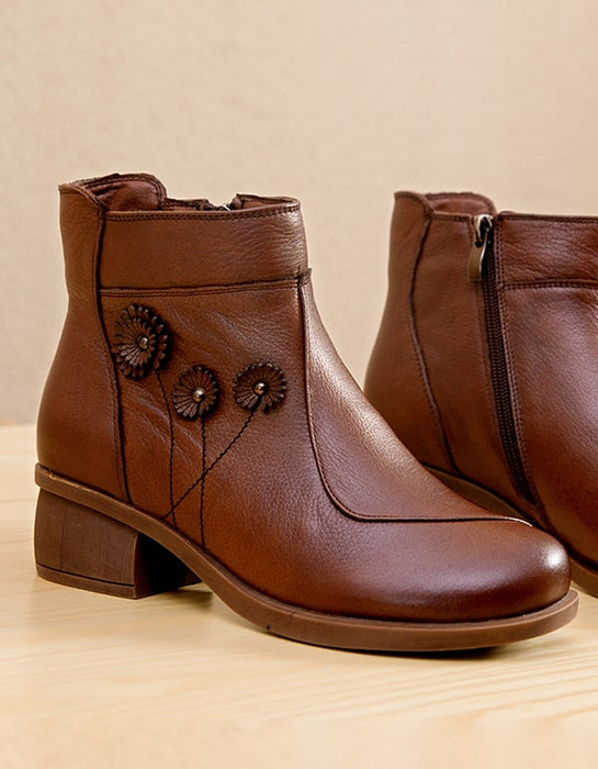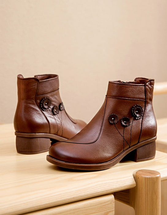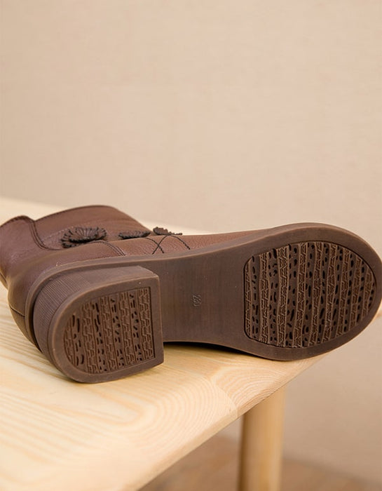 Women Chunky heeled Retro Leather boots handmade