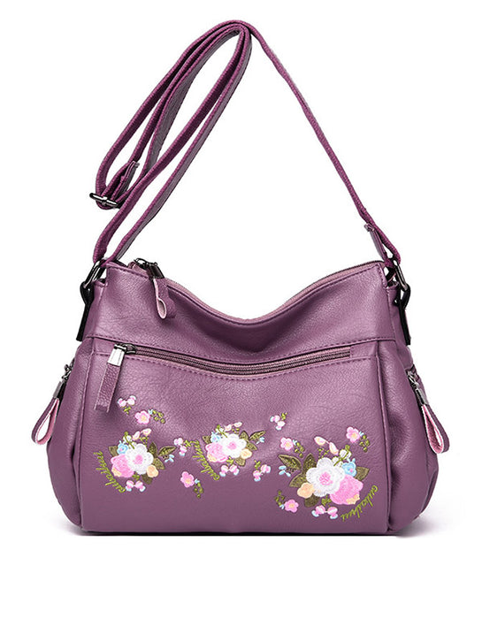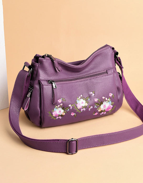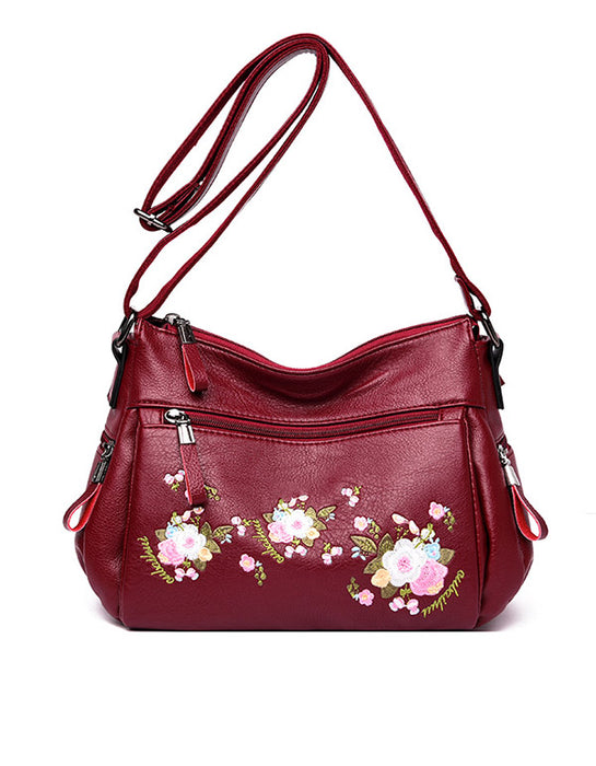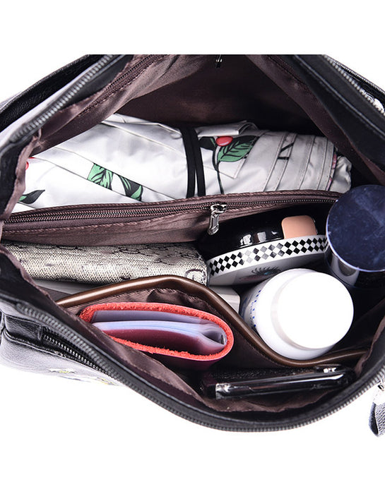 Women's Embroidered Large-capacity Leather Bag