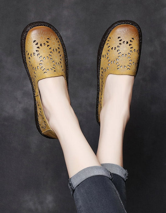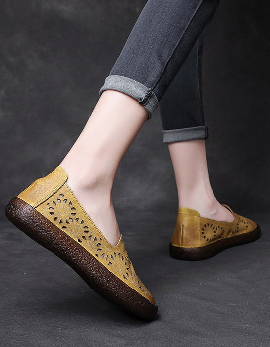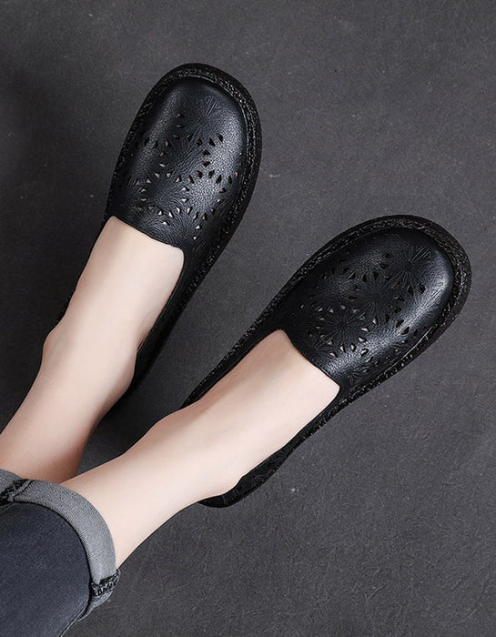 Women's Hollow Carved Leather Slip-on Shoes 35-43