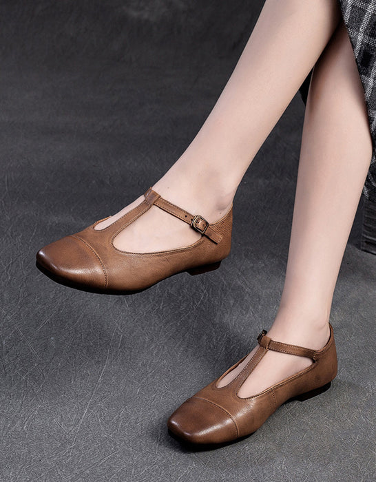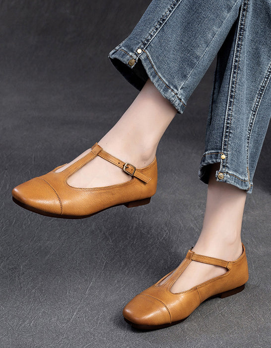 Handmade Pointed Toe T-strap Retro Flat Shoes