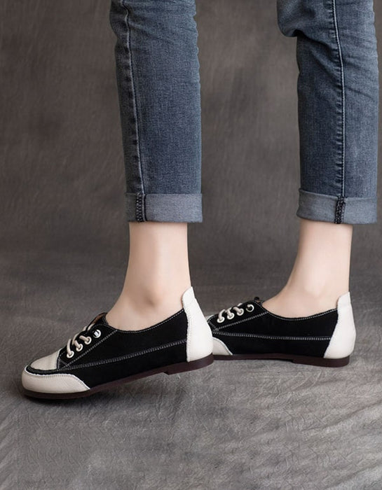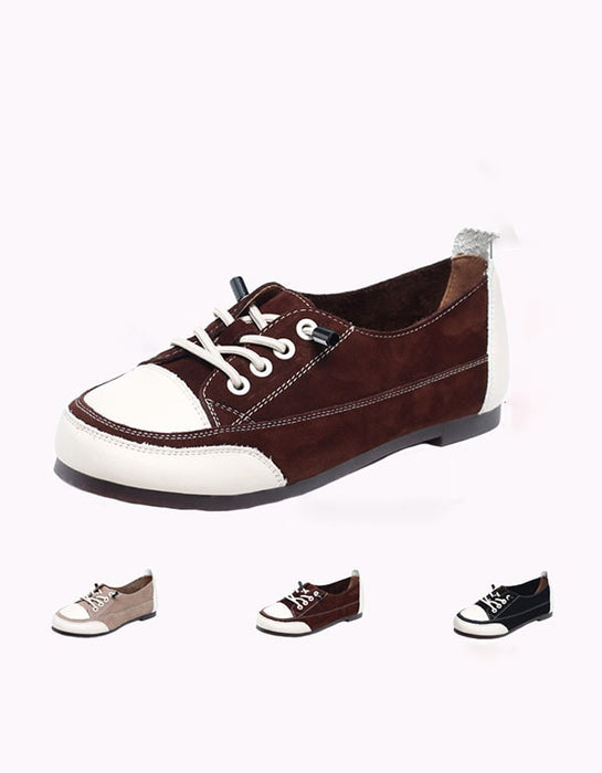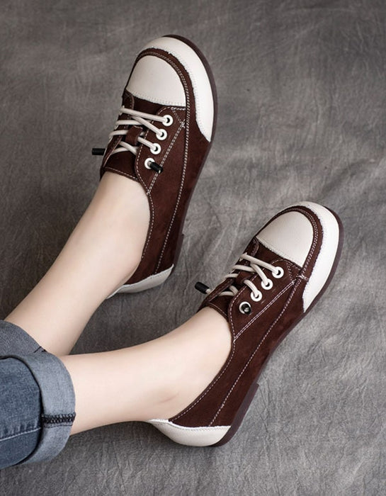 Women's Round Head Casual Leather Sneakers
