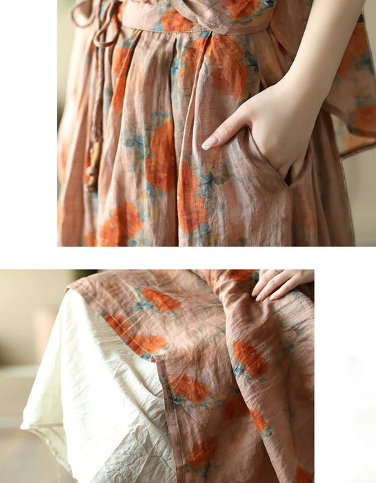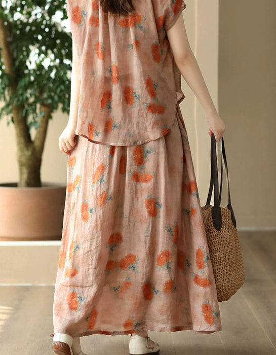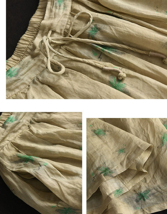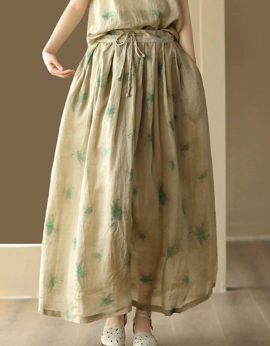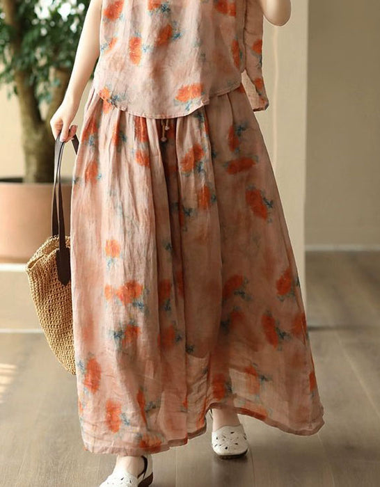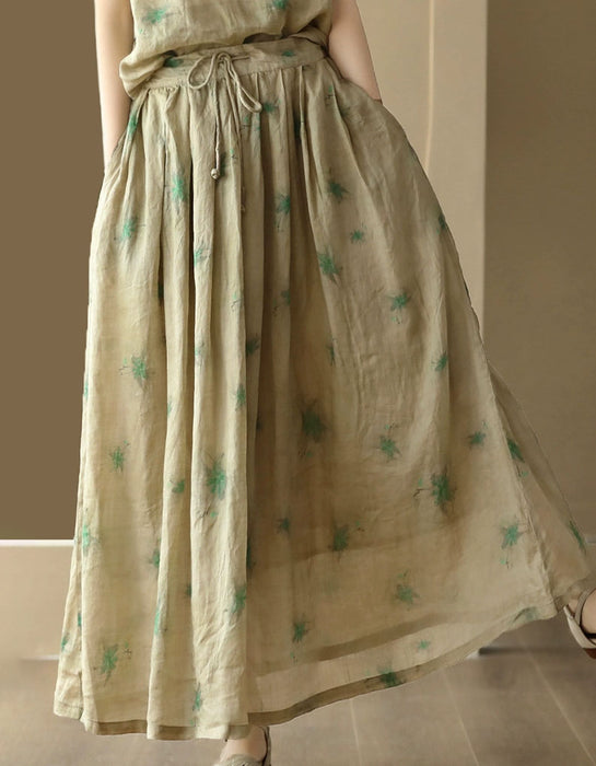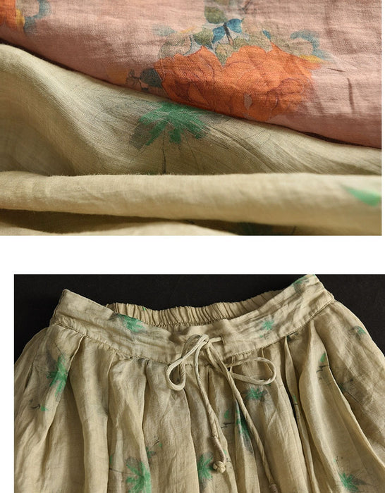 Women's Summer Floral Loose Linen Skirt