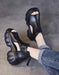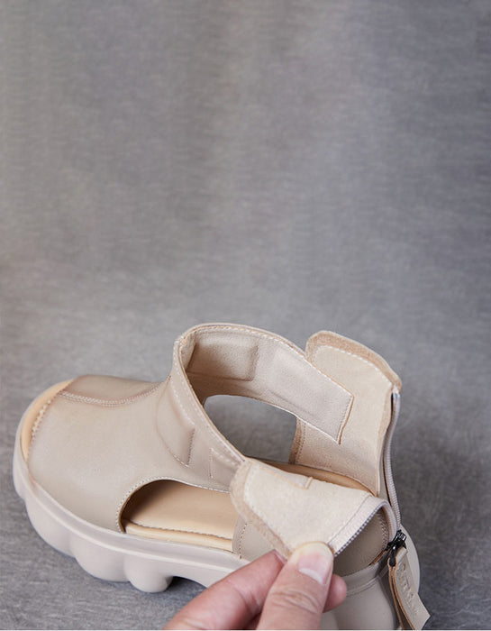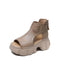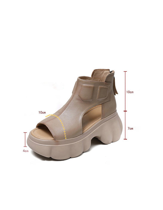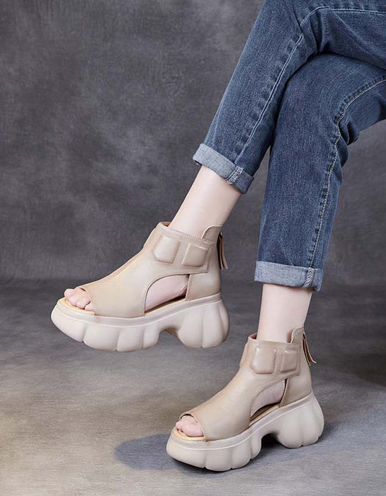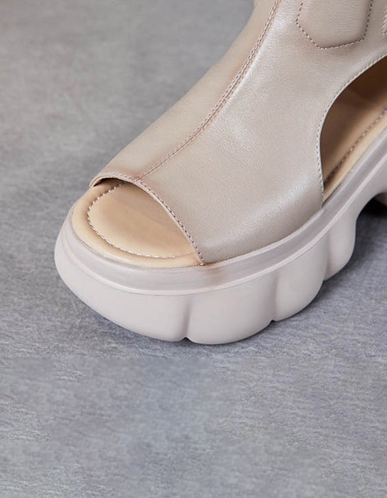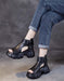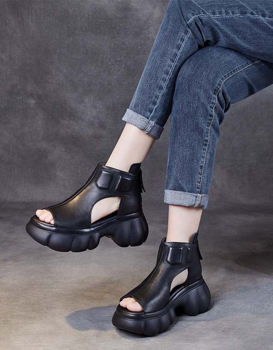 Retro Leather Cut Out Open Toe Platfrom Sandals